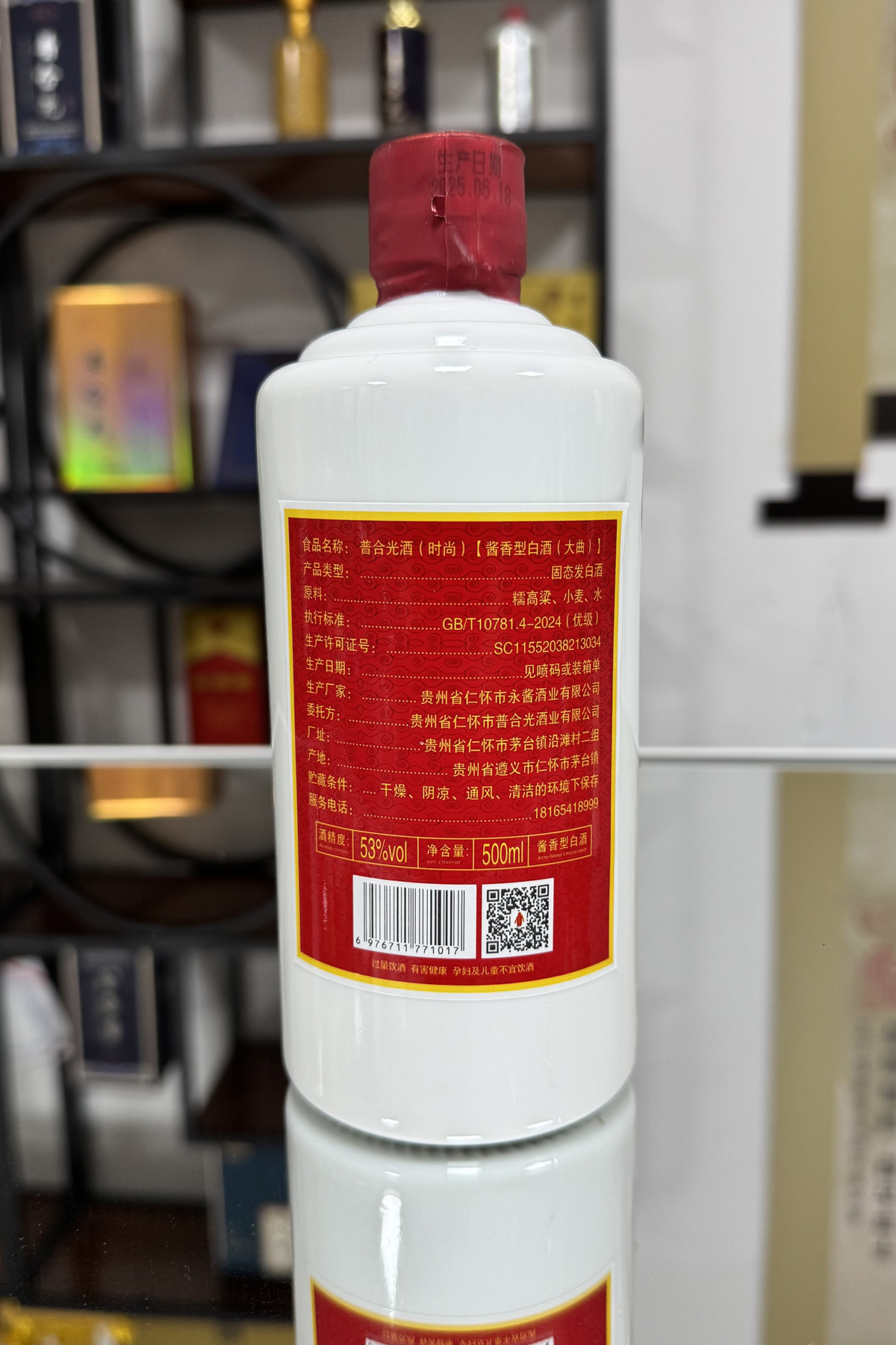 普合光时尚款是一款8年酱香风味白酒,采用2024年最新国家标准GB/T10781.4-2024(优级)可查看网址:https://www.antpedia.com/news/64/n-3319564.html,纯粮食酒,8年酱香风味,原料为小红高粱、小麦和水,有酱香、果香、花香、青草香、焙烤香等等,闻香舒适,入口柔、层次感强,酱味浓,有不刺鼻、不辣喉,醒酒快,不上头。包装简约时尚,价格亲民、性价比高,可做白酒爱好者的随身口粮酒。